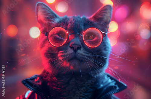 cat, visionary, goggles, neon, urban, futuristic, whisker, pet, vibrant, red, stylish, modern, digital artwork, cool, felino, illuminated, city lights, character, trendy, quirky, nightlife, glow, cyber, chic, personality, portrait, adorable, creative, curious, kitten, animal, illustration, cute, cat, art, pet, funny, design, eye, animal