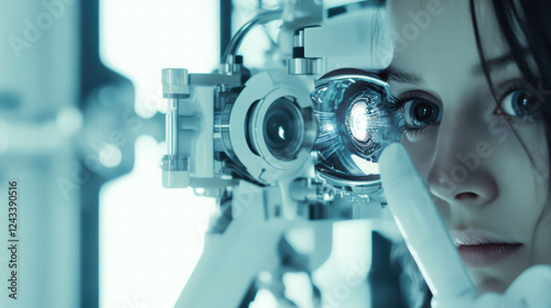 cyborg, girl, cybernetic, eye, high technology, laboratory, technology, futuristic, science, innovation, closeup, exam, machinery, digital, vision, robotic, artificial, intelligence, modern, sleek, design, portrait, sharpened, detail, advanced
