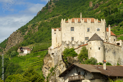 adige, bolzano, europa, italy, merano, building, castle, colours, day, historic, landscape, mountain, old, fruit farm, photo, plant, river, road, summer, tour tourism, travel, tree, vacation, vale, village