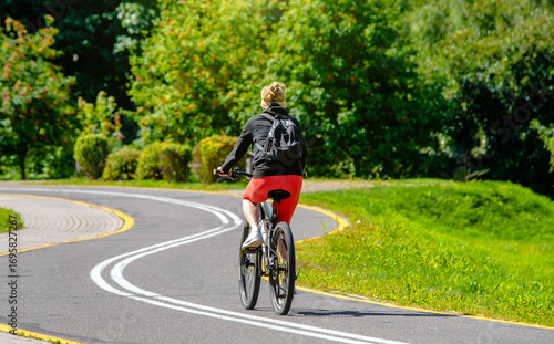Cyclist ride on the bike path in the city Park