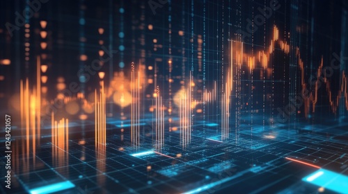D bar graph showing an upward trend, representing corporate success and market expansion.