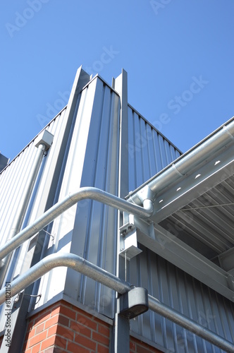 architecture, building, sheet, roof, heaven, industry, construction, wall, screw, connection, blue
