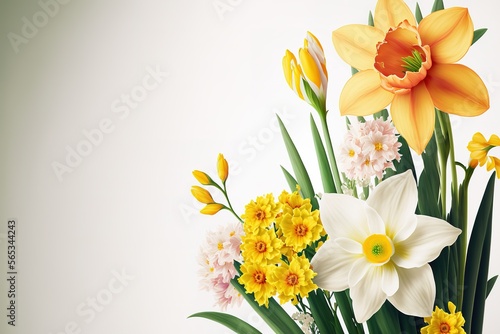 Daffodils and spring flowers background for text design digital and also for print resolutions generative ai