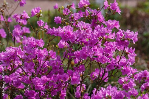 Dahurian rhododendron or Azalea daurica ( lat. Rhododendron dauricum ) in bloom in srping time