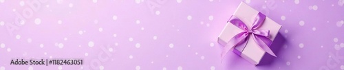 Dainty purple polka dot background featuring a delicate gift bow tied to a pastel-colored box, ribbon, purple, bow