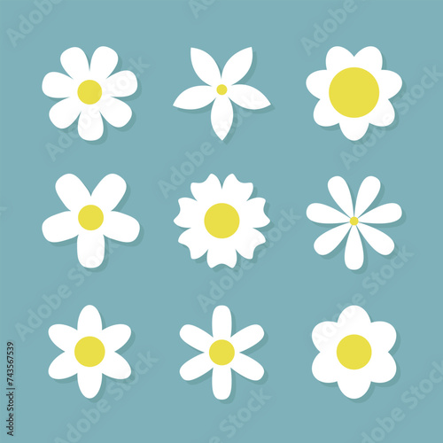 daisy, flower, chamomile, set, vector, icon, flat, baby, white, background, beautiful, big, bloom, blossom, blue, botanical, chamomile, card, cartoon, colours, colourful, concept, nubes, date, decorating, decoration, design, floral, flowerpot, fun, gardening, green, growing, growth, illustration, children, leaf, love, nature, object, plant, retro, season, spring, stem, summer, tenderness, valentine, vintage