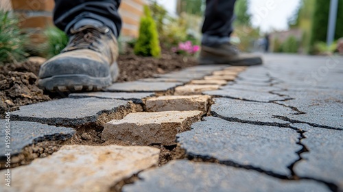 pavement, stone, cracked, pathway, ground, brick, foot, shoe, dirtied, repair, damage, construction, work, texture, detail, surface, grey, brown, black, concrete, paseo, paving, landscaping, installation, maintenance, wear, tear, deterioration, groundwork, masonry, street, road, footpath, tile, block, fractured, stone