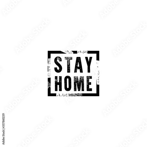 Damaged stamp with black inscription Stay Home isolated on white background.