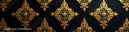 Damask Pattern with Gold Accents and Black Hues, intricate, luxurious, velvet