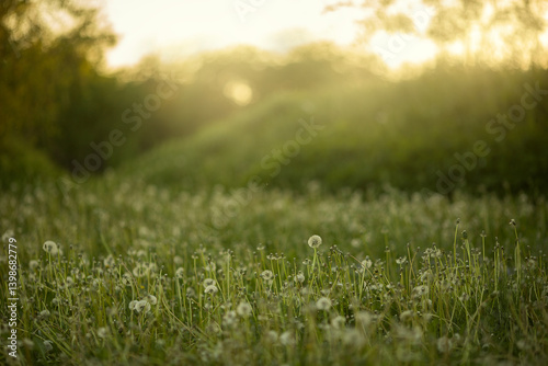 grass, nature, field, lawn, summer, meadow, landscape, sky, spring, plant, green, environment, garden, outdoors, cloud, turf, park, closeup, sun, blue, colours, hill, growth, nobody, background, sunset, blowball, sunrise