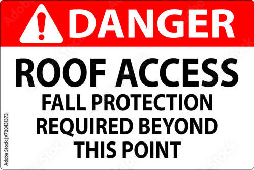 Danger Sign, Roof Access, Fall Protection Required Beyond This Point
