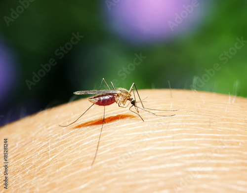dangerous insect nasty mosquito drinks the blood of the pierced human skin with a sharp sting