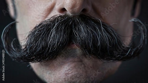 dapper mustache closeup perfectly groomed handlebar mustache rich black against crisp white subtle sheen precise edges vintage barbershop aesthetic gentlemans style icon