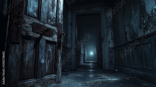 dark, corridor, hallway, scarey, skittish, creepy, haunted, abandoned, gloomy, tunnel, old, rundown, decayed, door, wall, shadow, light, empty, interior, building, room, night, blue, monochrome, design, aged, moldy, grimy, industrial, vintage, dungeon, ancient, mystery, foreboding, black, still, life, architecture, shot, desolate, dim, atmosphere, mysterious, terrifying, fear, horror, gothic