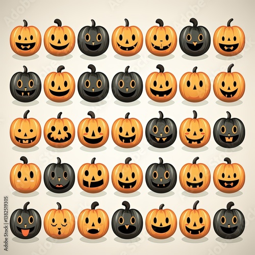 halloween, skittish, pumpkin, ghost, bat, sorcerer, cauldron, black cat, haunted, creepy, costume, skeleton, moon, dark, autumn, celebration, horror, eerie, pumpkin, smiley, face, vector, icon, set, cartoon, illustration, smile, emoticon, design, holiday, fun, orange, emotion, pattern, seamless, happy, art, october, symbol, expression