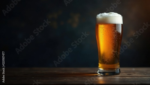 Dark background with a glass of beer on a shelf, mood, dark, ambiance