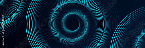 Dark blue abstract background with glowing circle lines. Geometric stripe line art design. vector