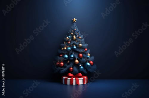 christmas, tree, holiday, decoration, celebration, christmas, gift, christmas tree, ball, star, winter, new, fir, year, present, season, ornament, vector, green, card, pine, december, illustration, design, box