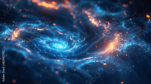 Dark blue background with swirling light flare that twists and turns created with Generative AI technology