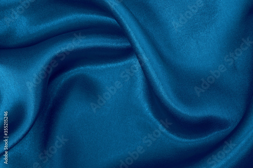Dark blue fabric cloth texture for background and design art work, beautiful crumpled pattern of silk or linen.