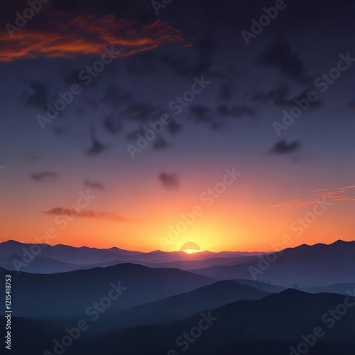 Dark Blue Gradient Background with Orange Glow at Sunset, atmospheric effects, dark blue colors, night sky