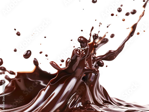 Dark brown Chocolate or cocoa liquid swirl splash with little foundation bubbles isolated on white background PNG
