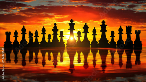 chess, strategy, sunset, silhouette, water, game, challenge, competition, leadership, business, success, planning, tactic, king, queen, rook, bishop, knight, pawn, piece, board, play, mind, intelligence, power, victory, achievement, concept, abstract, teamwork, management, goal, vision