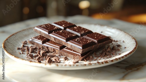 Dark chocolate bars stacked on a plate