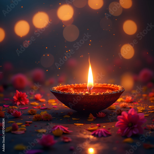 Dark Diwali Diya: A Digital Illustration of Festive Flowers and Light