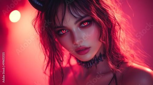 halloween, daemon, horn, gothic, cosplay, costume, dark, wing, skittish, red, black, evil, fantasy, devil, horror, make-up, blood, vampire, scarey, seductive, mystery, sorcerer, dark eyes, choker, leather, glamour, lace, sinister, night, mysterious, red eye, thriller, mystical, supernatural, eerie, sensual, red background, intensity