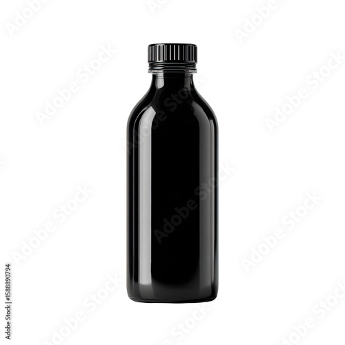 bottle, glasses, dark, black, transparent, screw, cap, liquid, medicine, pharmaceutical, container, cardboard box, product, empty, medicals, laboratory, science, ampoule, amber, sealed, tight, smooth, polished, cylindrical, rectangular, opaque, modern, simple, minimalist, illustration, three-dimensional, rendering, design, graphic, isolated, studio, pharmacy, drug, health, closed