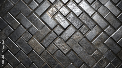 metal, tile, herringbone, pattern, dark, grey, texture, background, design, architecture, material, surface, construction, industrial, geometric, abstract, block, brick, stone, paving, grey, silver, shiny, glossy, weathered, rough, seamless, repeat, modern, contemporary, wallpaper, illustration, three-dimensional, render