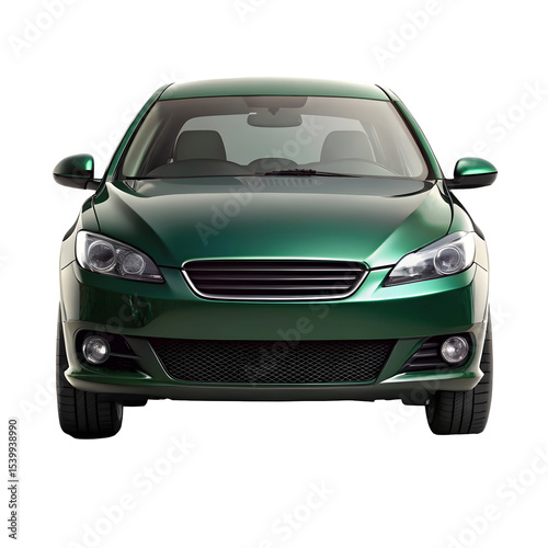 Dark Green Car Front View Isolated on Pure White Background