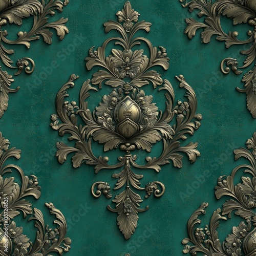 damask, pattern, floral, ornament, background, texture, green, decorative, design, surface, elegant, vintage, seamless, wallpaper, retro, classic, style, illustration, art, repeat, renaissance, stylish, artistic, fabric, interior, graphic, dark, paper, luxurious, victorian, print, ornate, decoration, scroll, textile, swirl, old