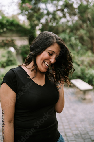 dark hair, female, garden, hairdresser, joy, laughing, lifestyle, nature, portrait, siam, travel, traveler, traveling