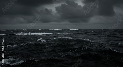 Dark Ocean Waves Crashing Under Stormy Sky on Overcast Day