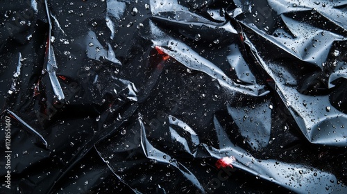 plastic, sheet, water, droplet, dark, black, red, texture, background, glossy, shiny, crumpled, folded, wet, damp, surface, abstract, design, element, pattern, detail, macro, photo, image, visual, aesthetic, contrast, reflective, light, shadow, ripple, wrinkle, material, style, art, graphic, intense, moody, dramatic
