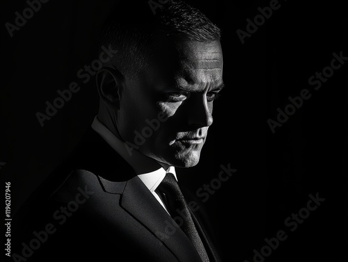 portrait, man, suit, mystery, elegance, shadow, light, sophistication, dark, dramatic, fashion, style, corporate, business, confidence, demeanor, intrigue, contrast, dim, artistic, character, ambience, emotion, personality, professional, power, allure, charisma, cinematic, black, minimalist, individuality, secretive, polished, modern, premium, timeless, enigmatic, attitude, luxe, solitary, refined, atmospheric, depth, gaze, intensity, exploration, gravity
