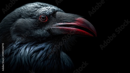 raven, bird, black, feather, beak, eye, nature, wildlife, animal, closeup, profile, dark, elegant, portrait, sharp, texture, glossy, eerie, mysterious, predator, plumage, wing, avian, natural, fauna, macro, detailed, shadow, gaze, ominous, beauty, majestic, striking, wild, creature, silhouette, power, fascinating, captivating, illustration, art, dramatic, contrast, solitary, environment, theme, observation