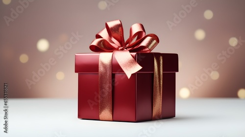 gift box, present, christmas gift, gift, box, christmas background, ribbon, bow, gift ribbon, christmas, holiday, celebration, decoration, light background, isolated, copy space, wedding gift, birthday gift, birthday gift, anniversary, package, enclosed, surprise, shiny, festive, dark red