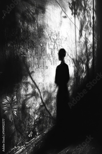 shadow, figure, silhouette, monochrome, wall, texture, background, dark, light, contrast, mysterious, enigmatic, skittish, surreal, art, photo, black, white, grey, leaf, branch, tree, forest, nature, abstract, pattern, design, grunge, vintage, old