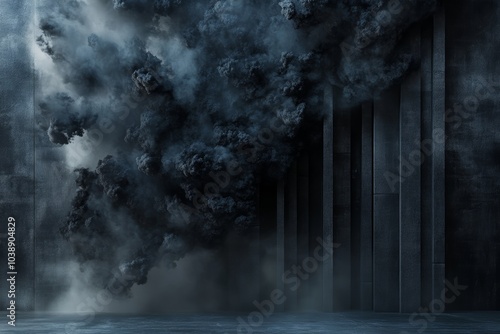 smoke, dark, cloud, dramatic, industrial, wall, geometric, moody, atmosphere, blue, grey, metal, texture, abstract, artistic, design, pattern, detail, architecture, conceptual, mystery, ominous, visual, composition, contrast, shade, depth, dimension, background, scenery, effect, mood, structure, intensity, scene, surreal, visualisation, impact, expression, subtile, essence, form, layer, shadow, space, silhouette