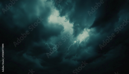 Dark Stormy Sky With Lightning Illuminating the Clouds