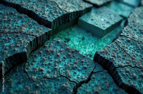 Dark teal agua sea water green blue rock stone basalt mountain granite volcanic background. Toned texture. Close-up. 3d. Cracked collapse, broken, crumbled.