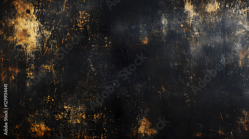 Dark textured background, black and gold grunge backdrop, distressed surface, abstract art, scratched paint, vintage texture, aged material, grungy wallpaper, design element.