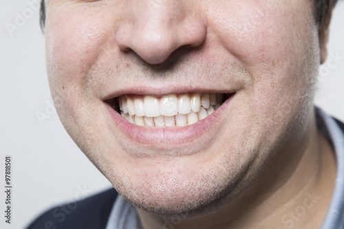 Dark-haired european businessman shows us his perfect grin while in front of a gradient background