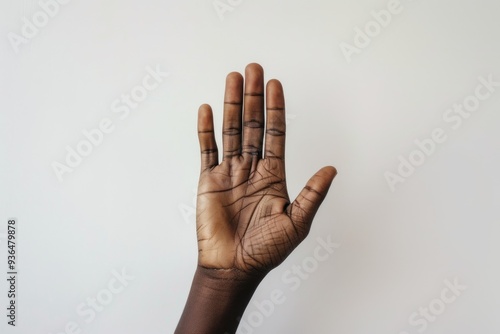 Dark-Skinned Hand Showing Stop Gesture Against White Background - Concept of Diversity and Awareness for Poster Design