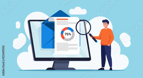 datum, electronic mail, performance, impact, monitoring, examine, rate, review, investigation, visualisation, engagement, business, computer, businessman, laptop, cyberspace, screen, icon, technology, vector, symbol, people, three-dimensional, illustration, woman, signs, office, cartoon, concept, tablet, web, communication, monitor, person, success, online