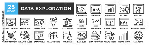 Data Exploration icon collection set. Containing design data, technology, digital, business, research, explore