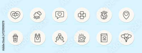 Date line icon. Intimate dinner, romantic ambiance, candlelight romance, fine dining experience. Pastel color background. Vector line icon for business and advertising